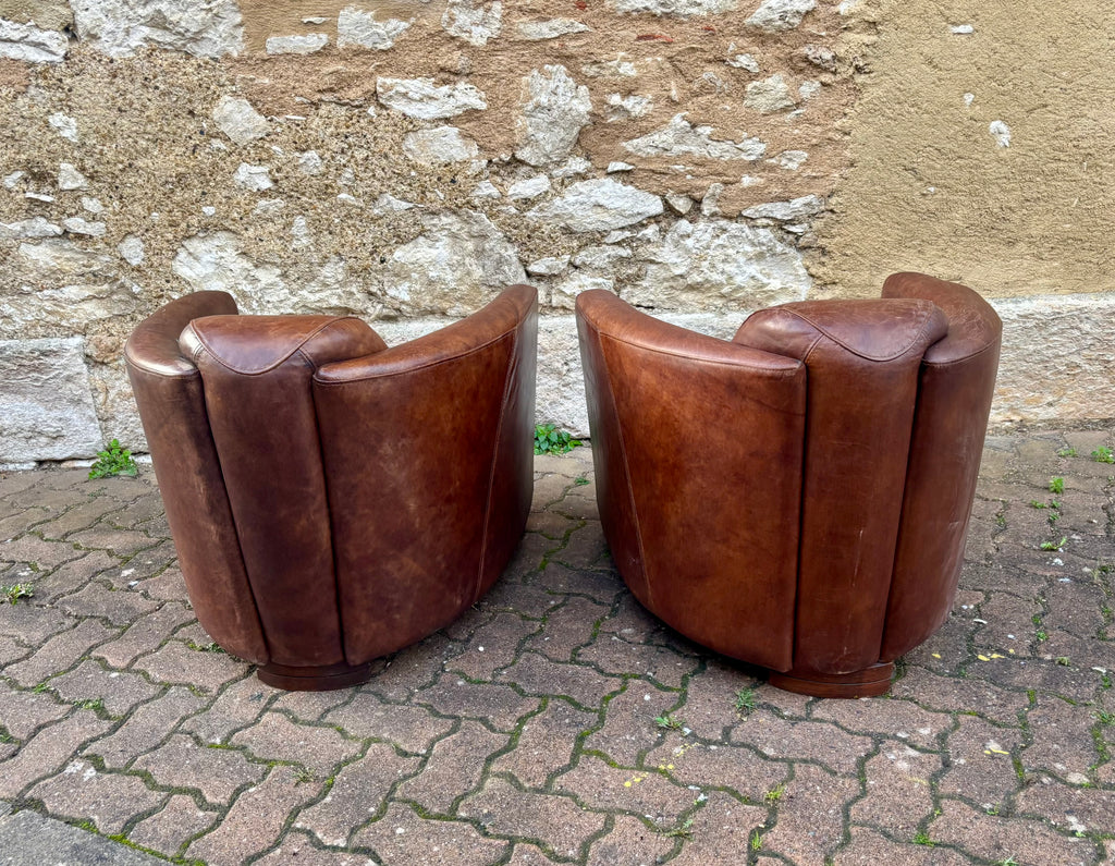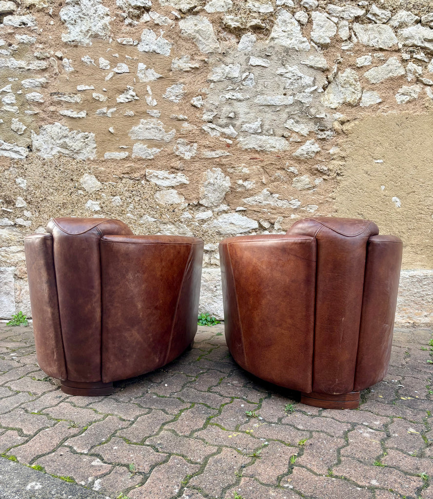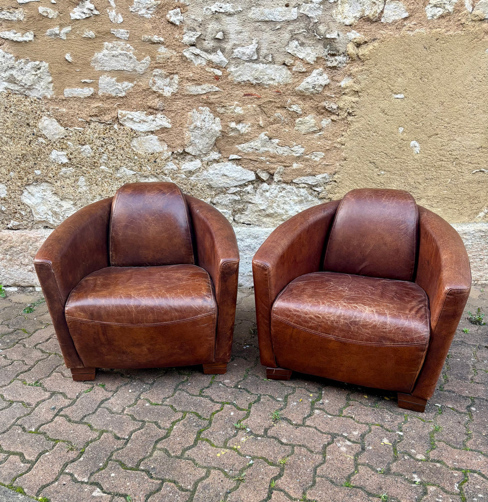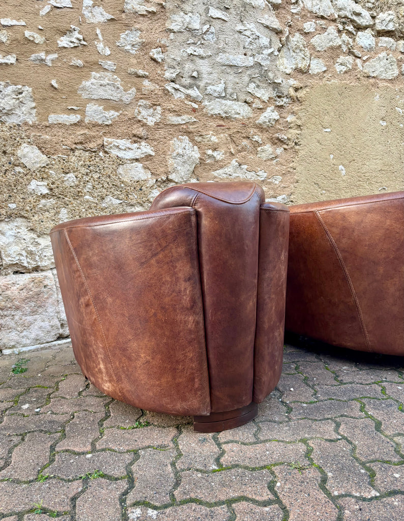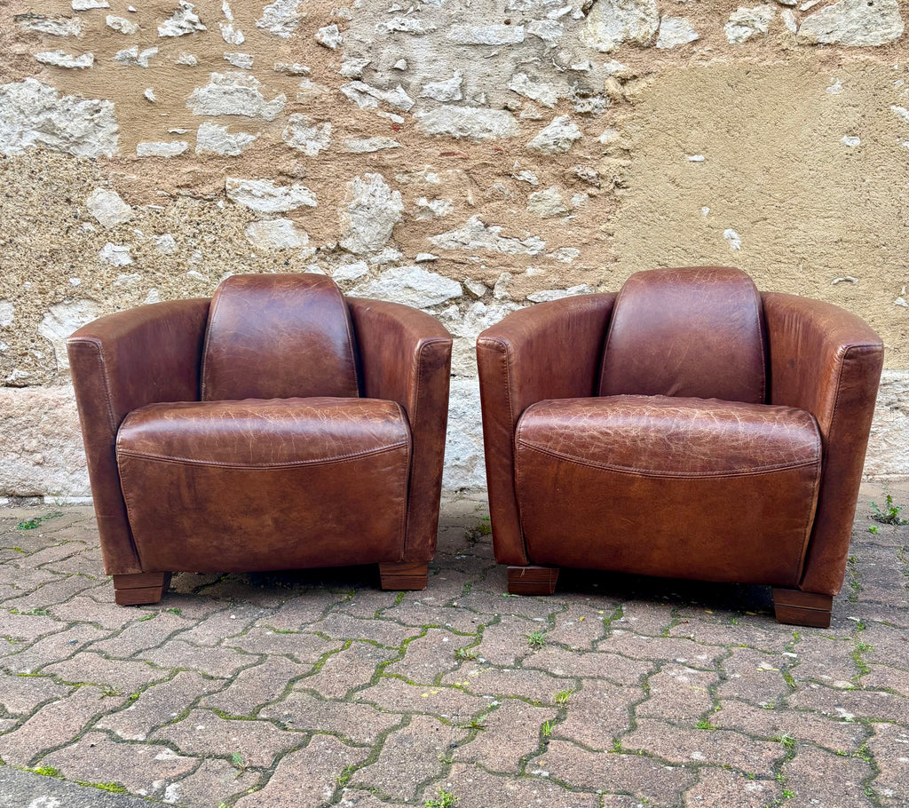 Solidement conçu autour d'une structure en hêtre, ce fauteuil en cuir possède une assise profonde. Ses accoudoirs et son dossier bombé épousent parfaitement le dos pour assurer un très grand confort.