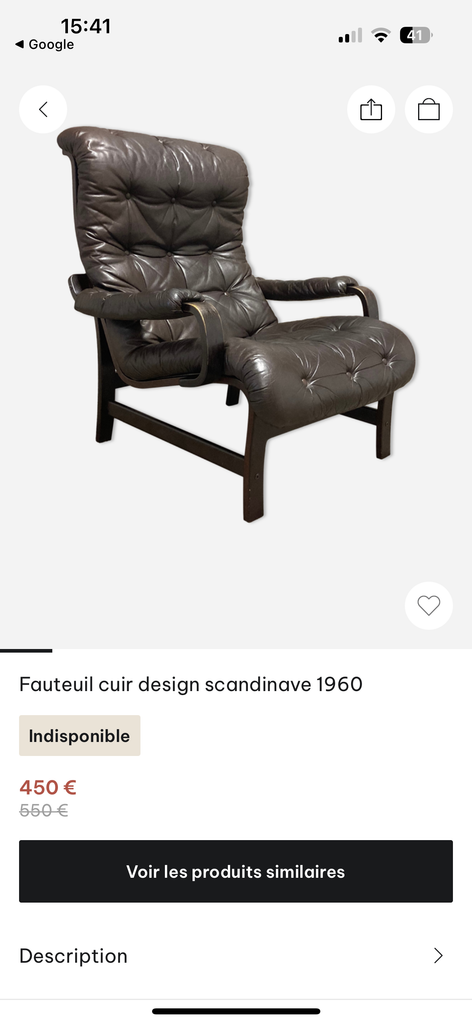 Prix pour le fauteuil unique (état satisfaisant) : 270€