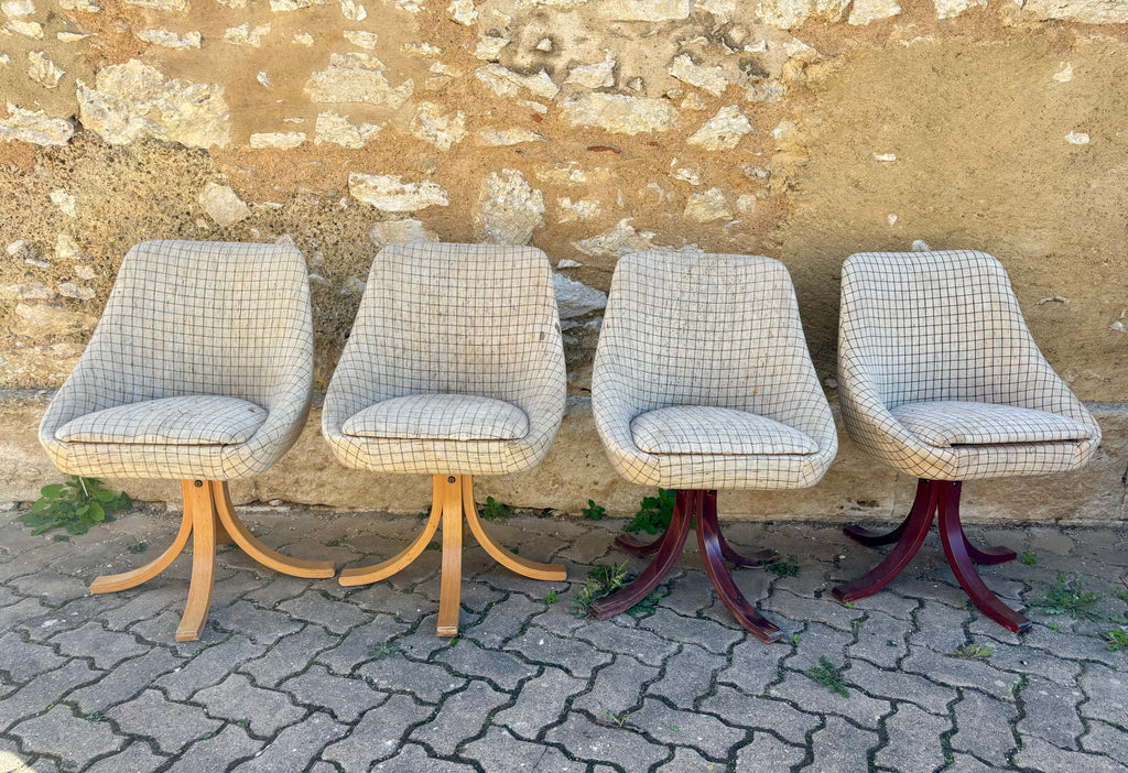 Craquante petite série de fauteuils vintage datant des années 1970.