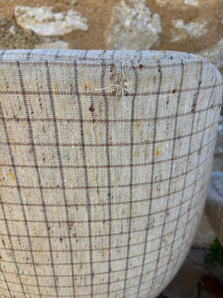 Tissu très élégant façon tweed motif carreaux, et structure en bois.