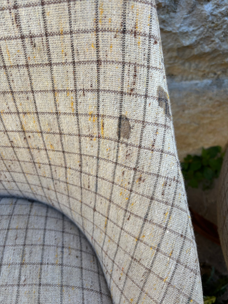 Attention, ils nécessitent un travaux de restaurations, ou une cure en soins intensifs car ces petits fauteuils ont vécu des dizaines d’années au service d’un hôtel et portent de nombreuses marques de leur vécu !