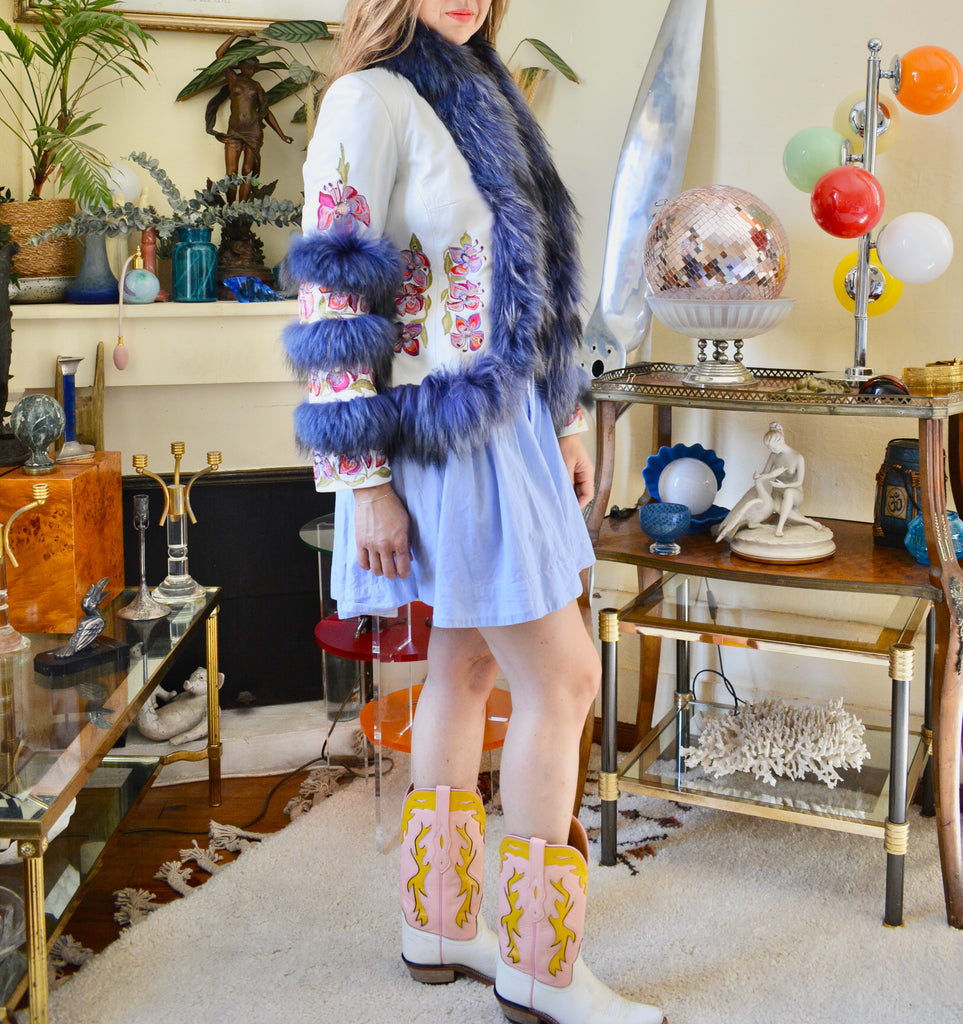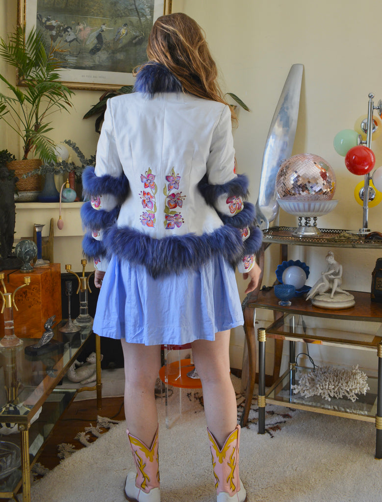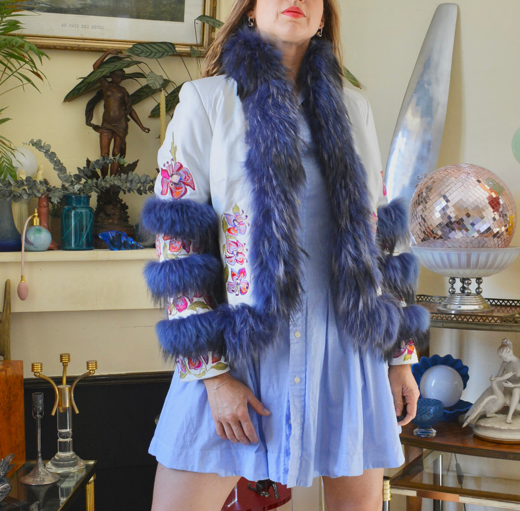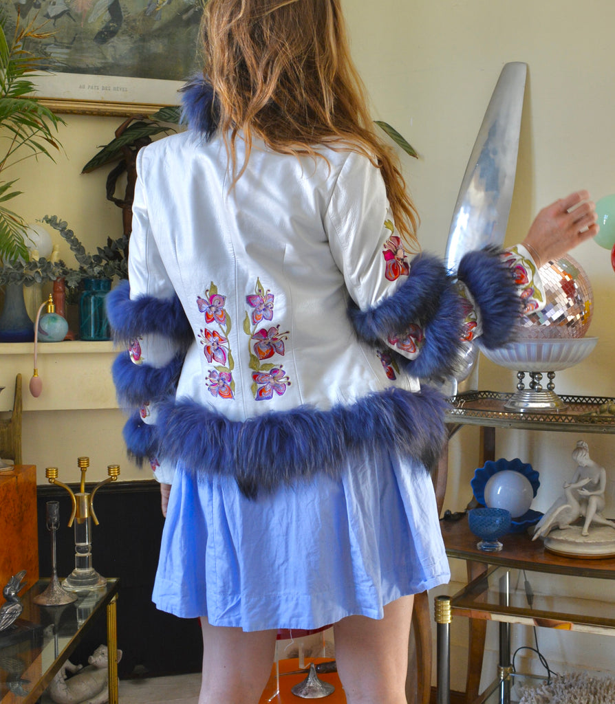 En cuir véritable blanc avec de nombreuses fleurs multicolore brodée à l'avant comme à l'arrière.