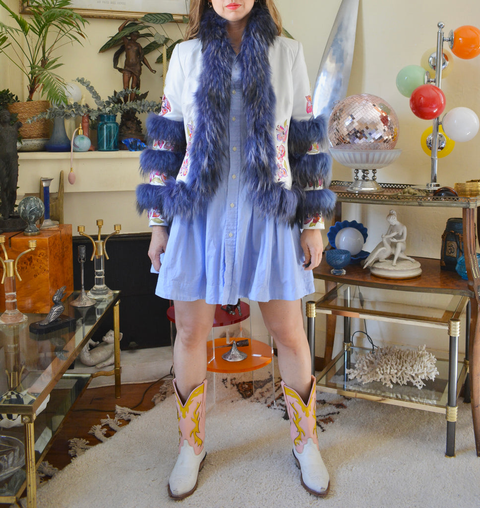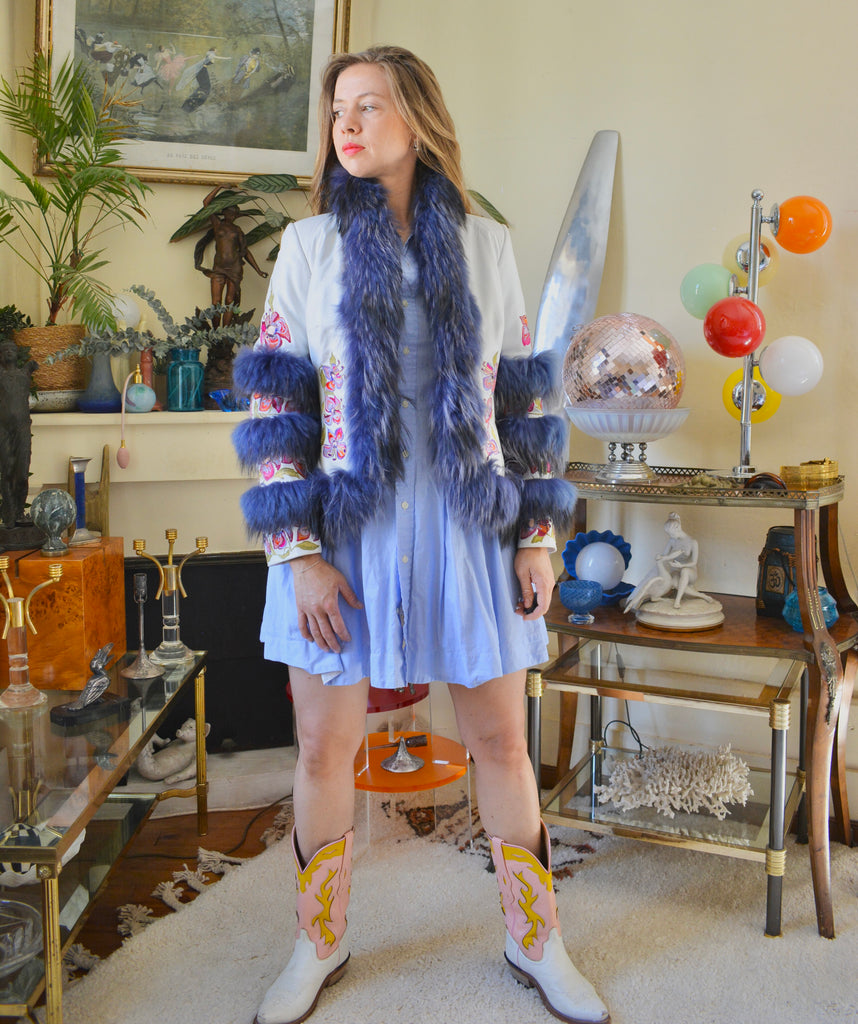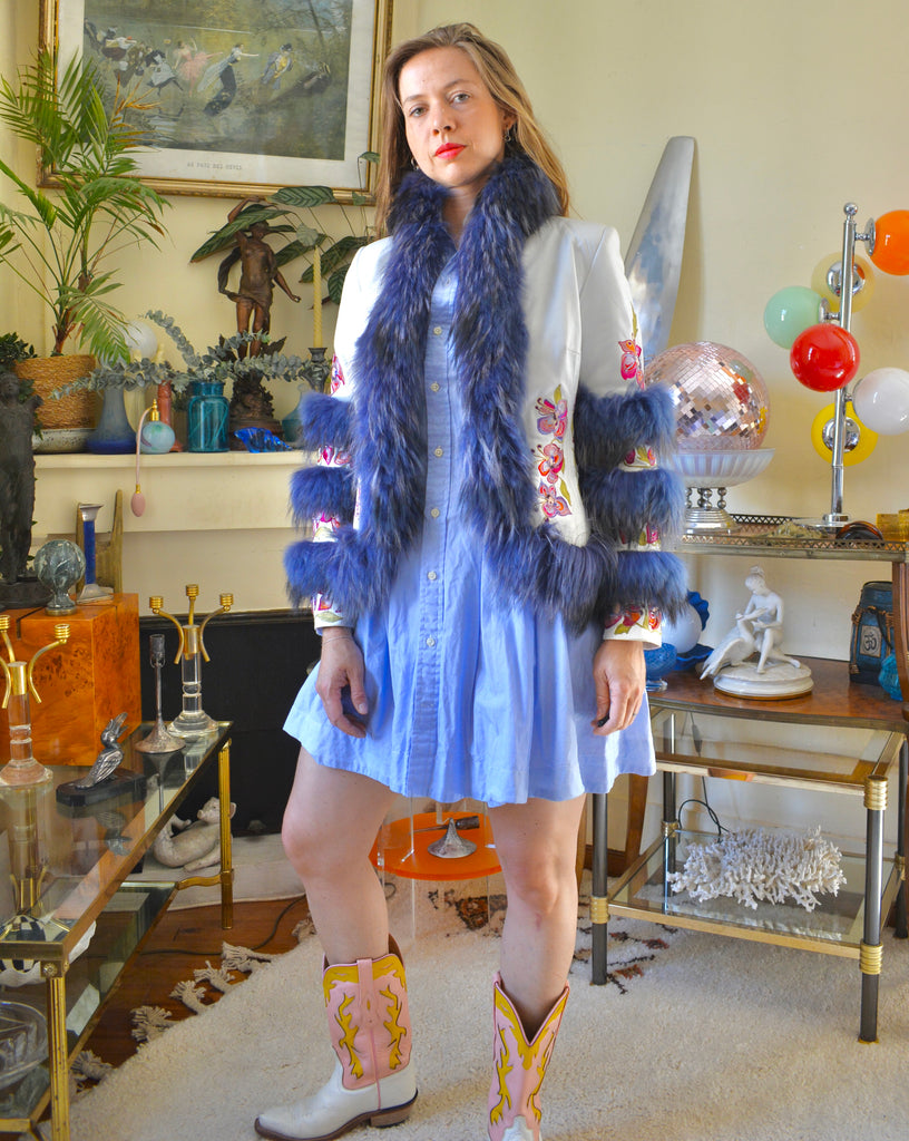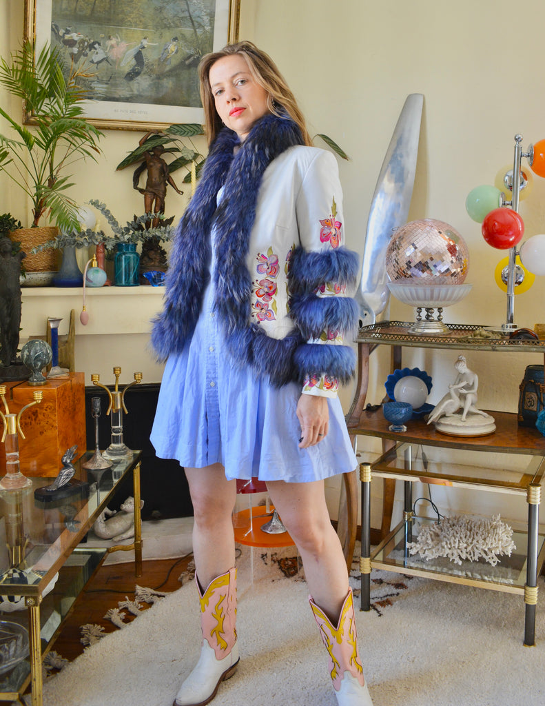 En cuir véritable blanc avec de nombreuses fleurs multicolore brodée à l'avant comme à l'arrière.