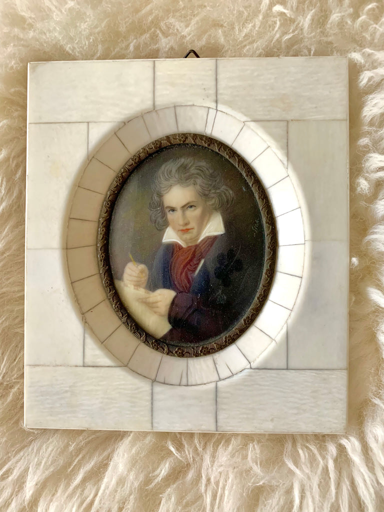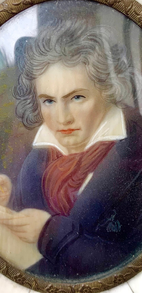 Superbe portrait miniature représentant Ludwig van Beethoven, finement peint à la main.