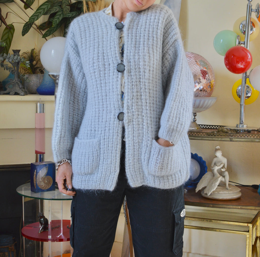 Très chouette cardigan fait main en mohair, et laine. Doux, un vrai petit bijou pour vous accompagner lorsque les soirées se font fraîches, ainsi qu'en hiver.