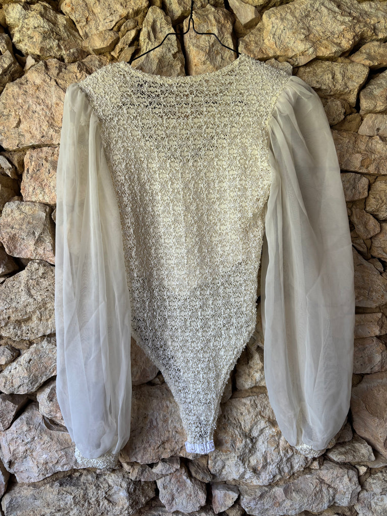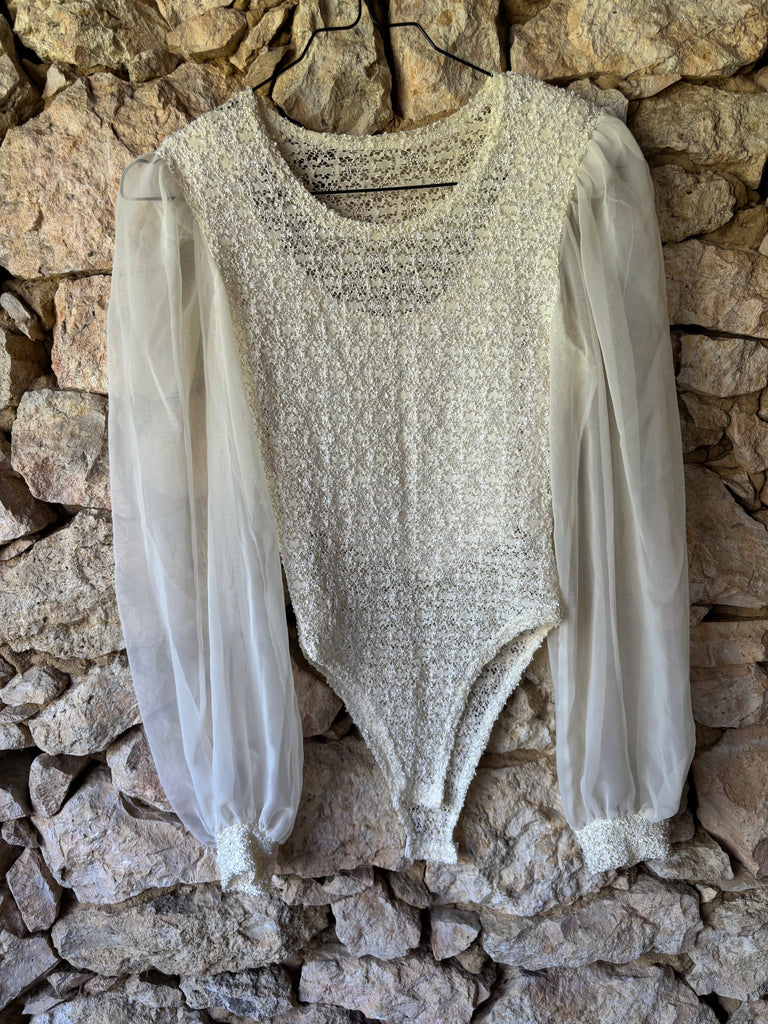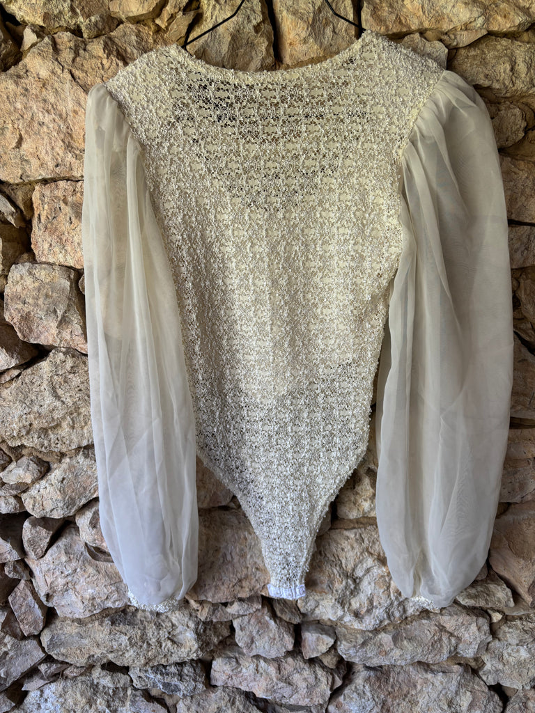 Superbe body écru à la fois chic et romantique, idéal pour une tenue habillée ou un look casual élégant.