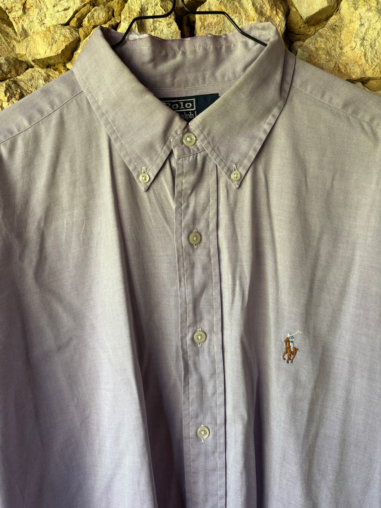 Chemise Ralph Lauren originale, coupe classique et intemporelle dans un joli coloris lilas très doux.