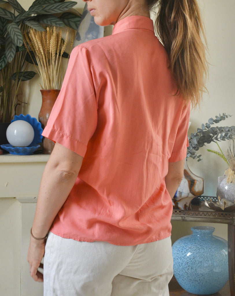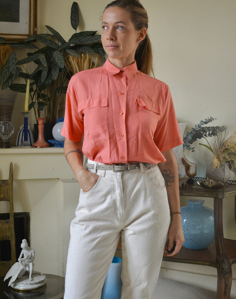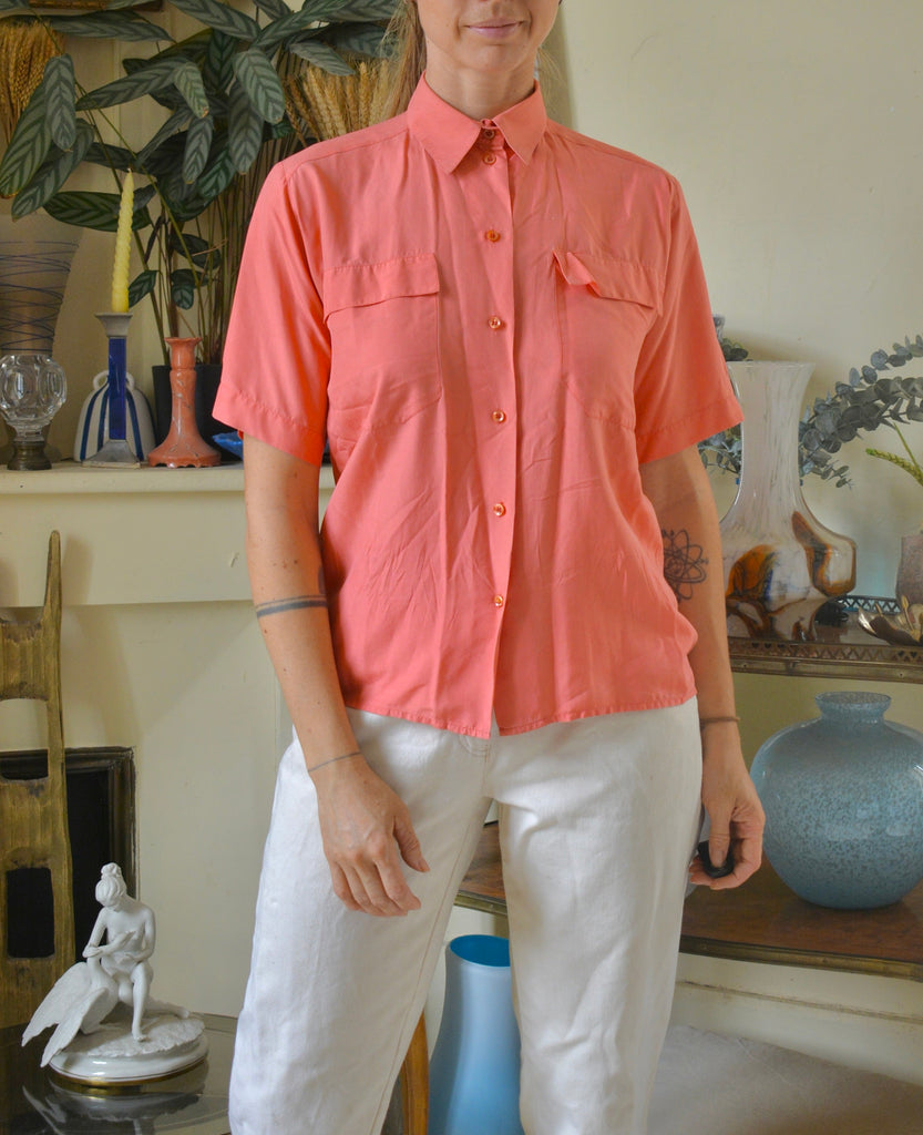 100 % en soie, d’une jolie couleur corail qui égayera vos tenues.