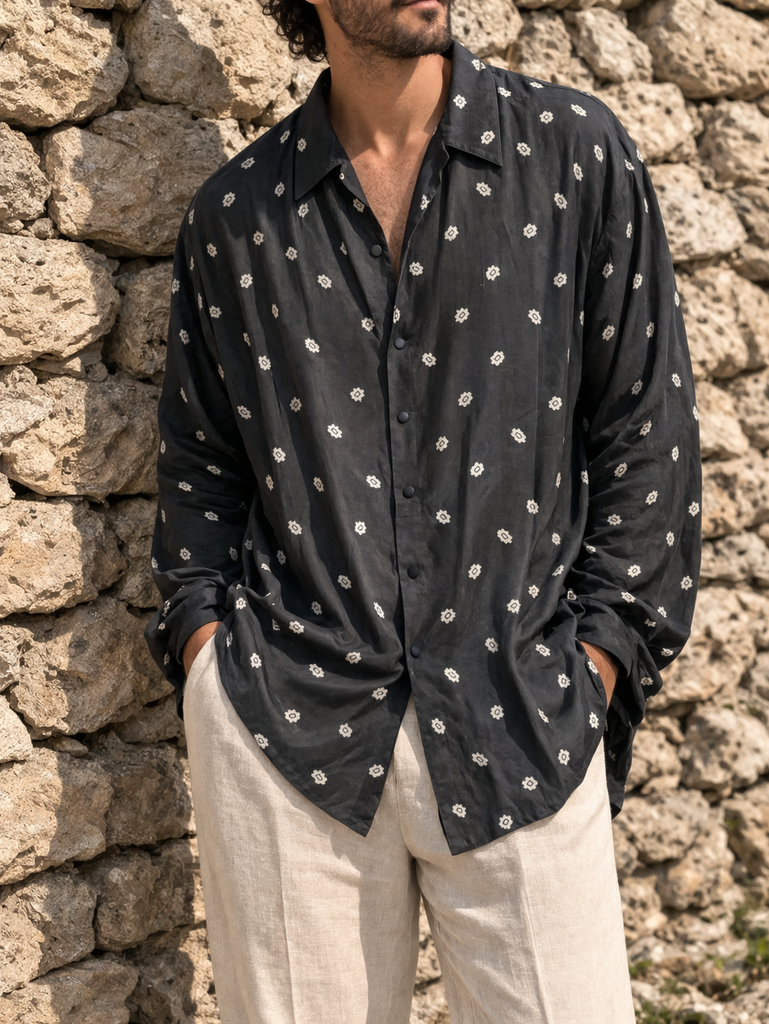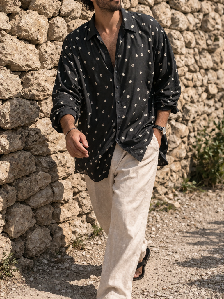 Coupe longue et fluide, avec un tombé naturel qui donne un style à la fois chic et décontracté. Motif discret et élégant, facile à porter au quotidien comme en tenue plus habillée.