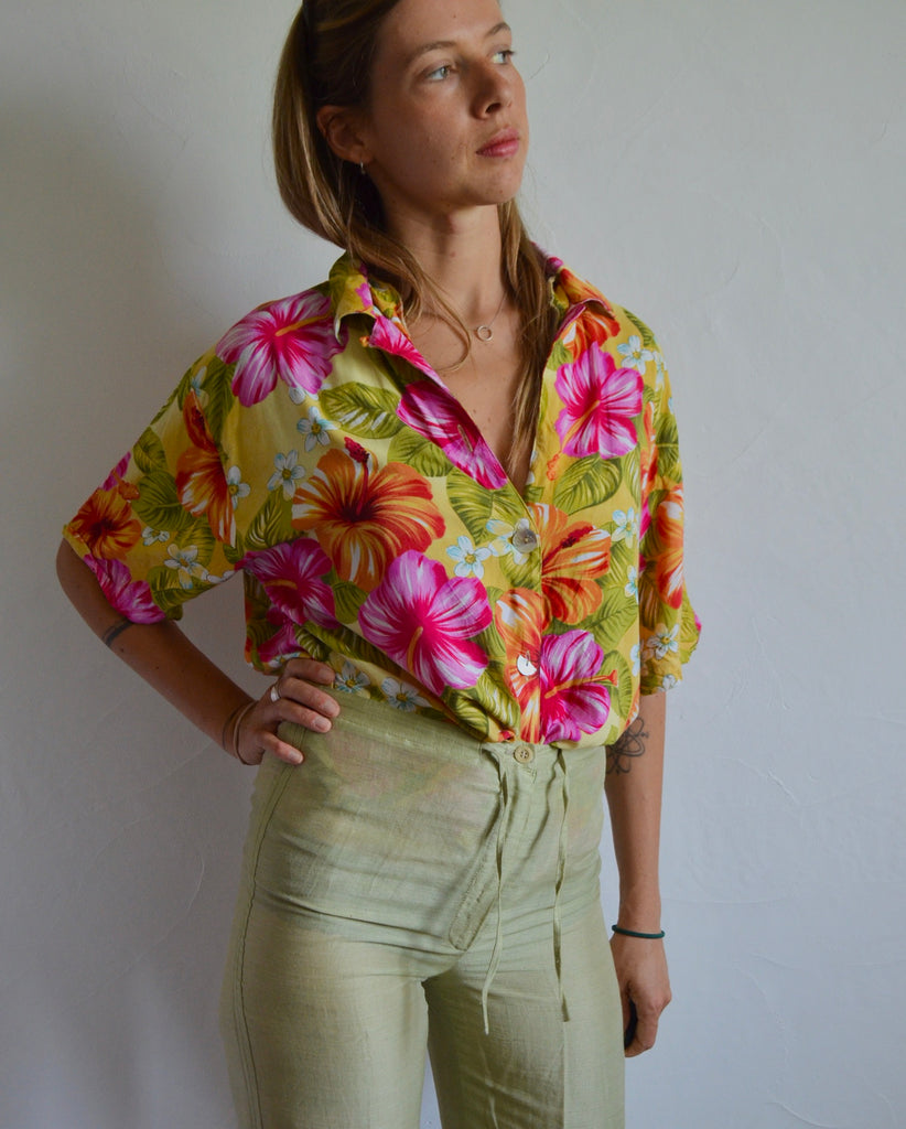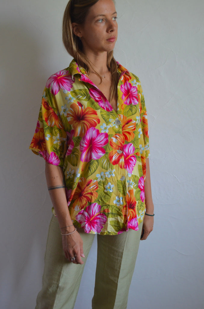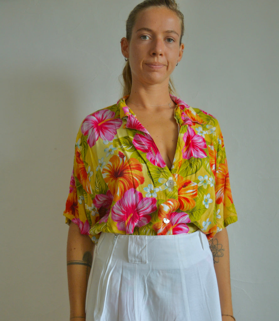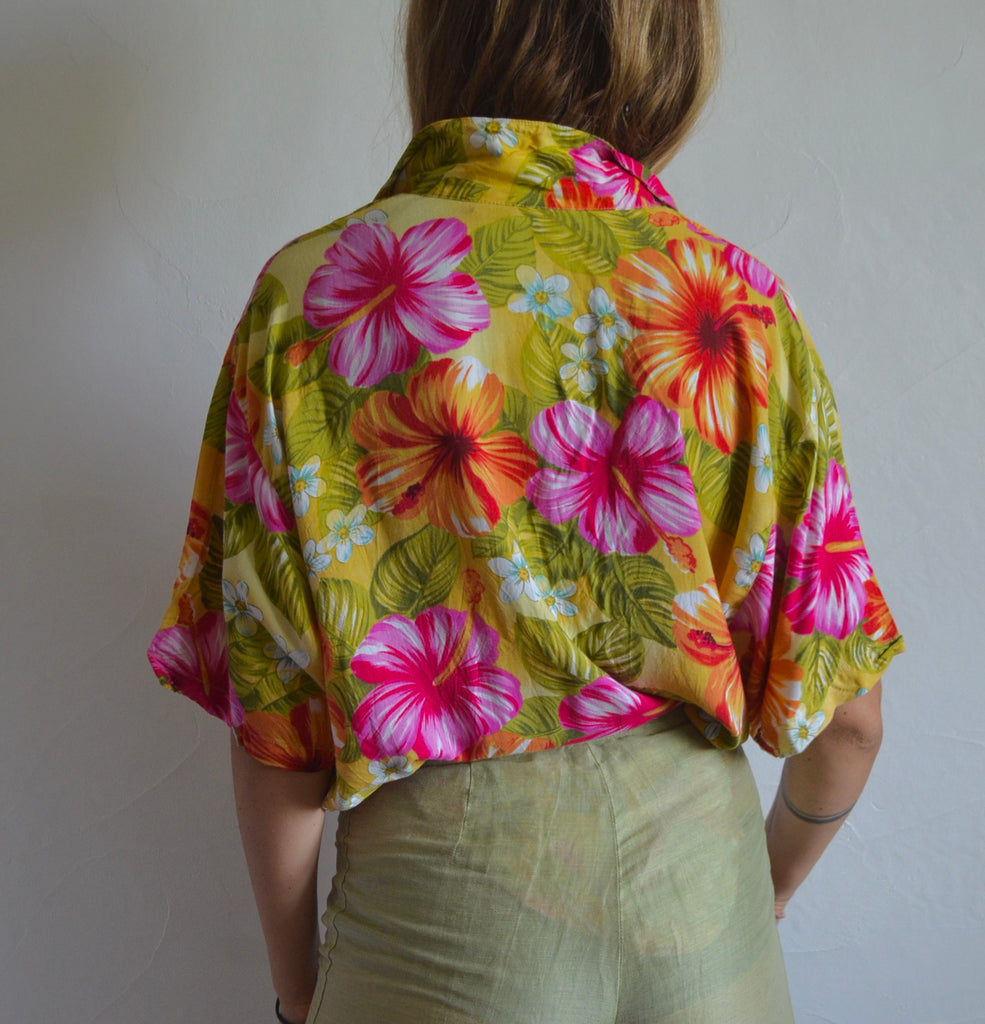 Jolie blouse/chemise à l'inspiration hawaïenne.