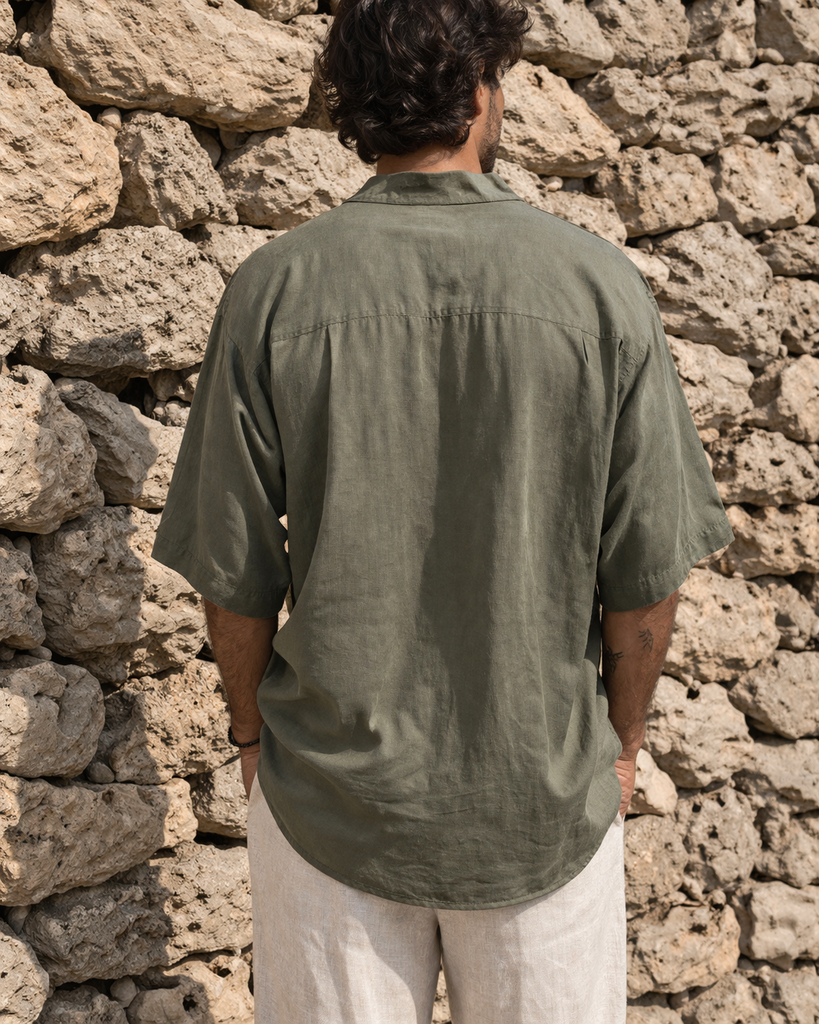 Couleur verte foncée qui tend légèrement vers du kaki (mais qui préserve une tonalité verte, ce n’est pas du vrai kaki!)