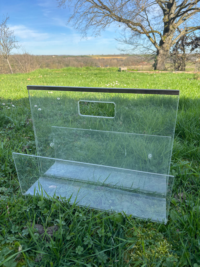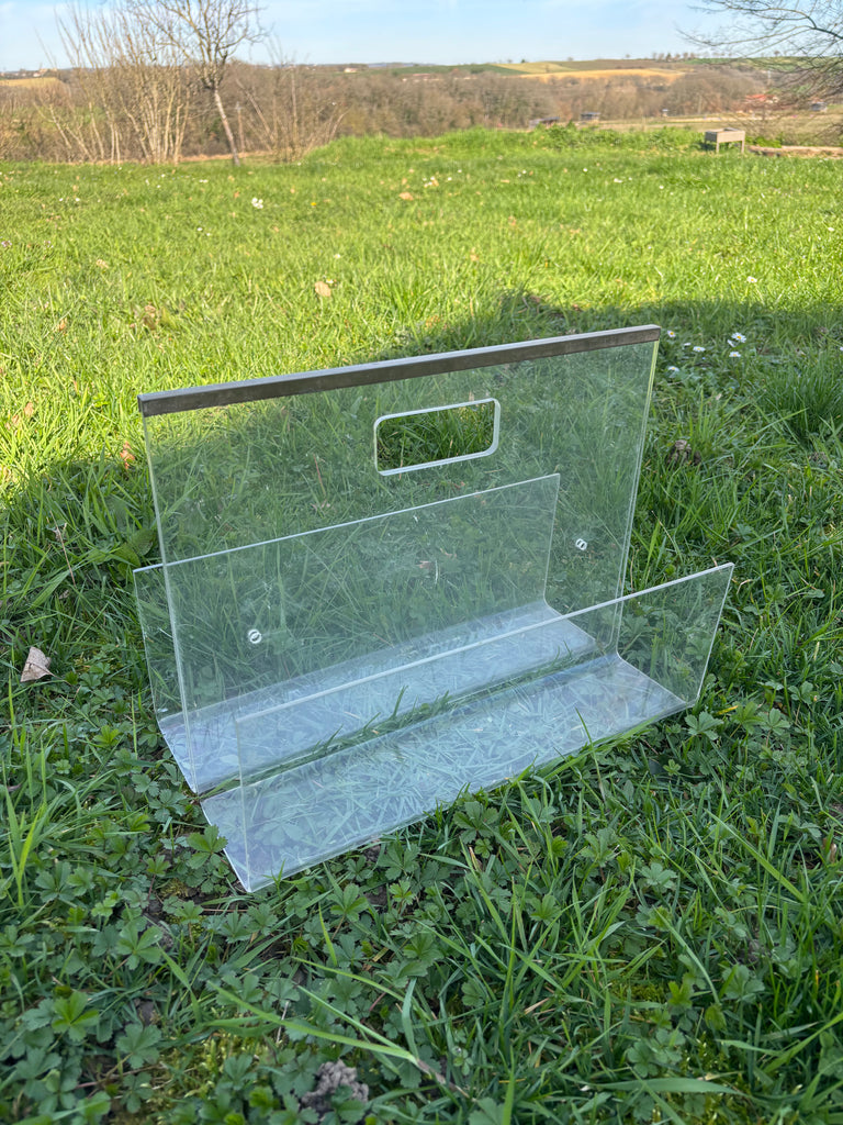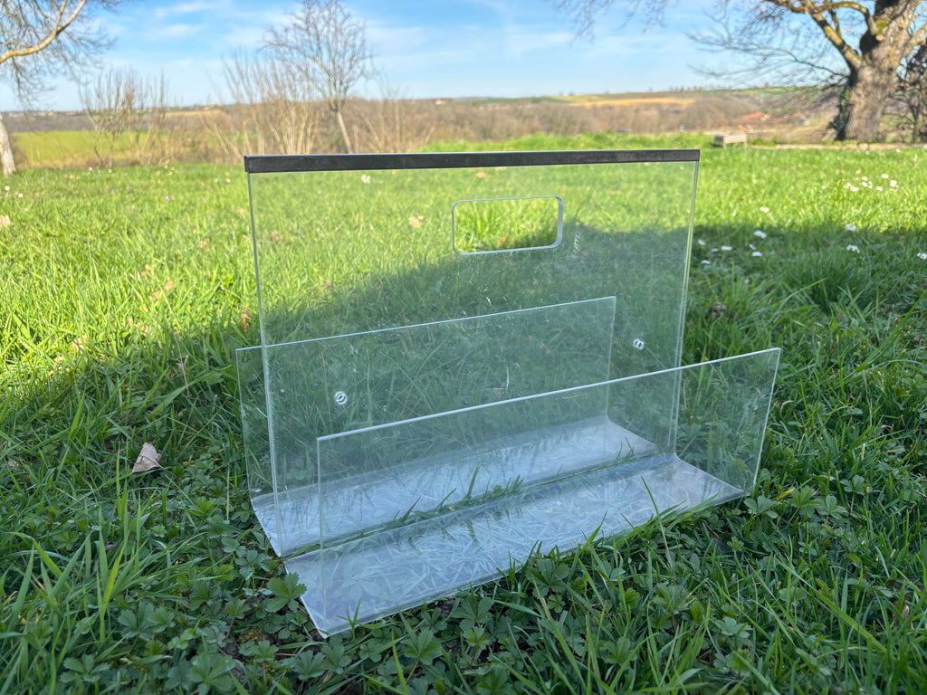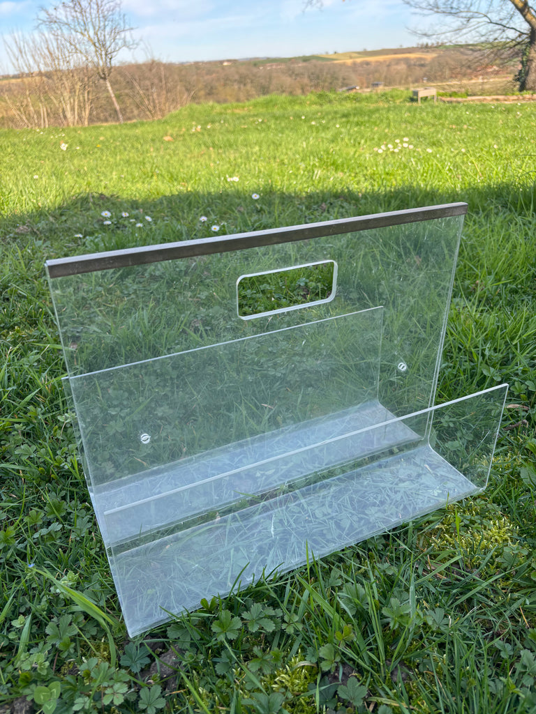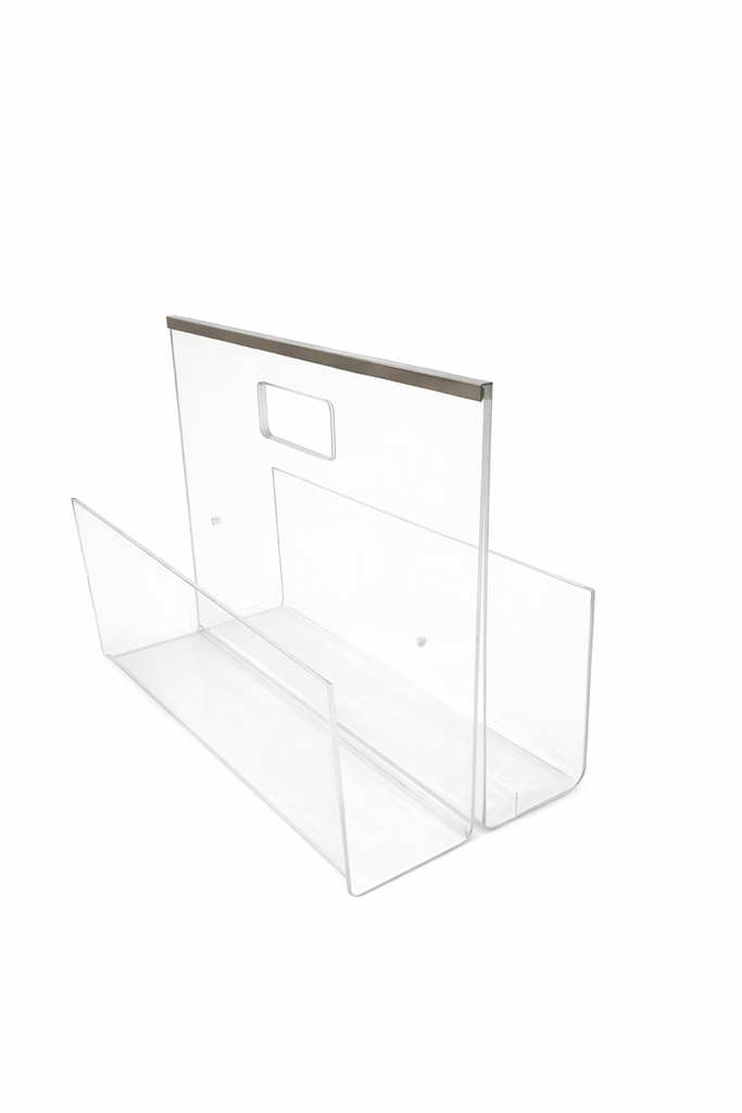 Élégant porte-revues en acrylique transparent, idéal pour ranger magazines, journaux ou dossiers tout en apportant une touche design à votre intérieur.